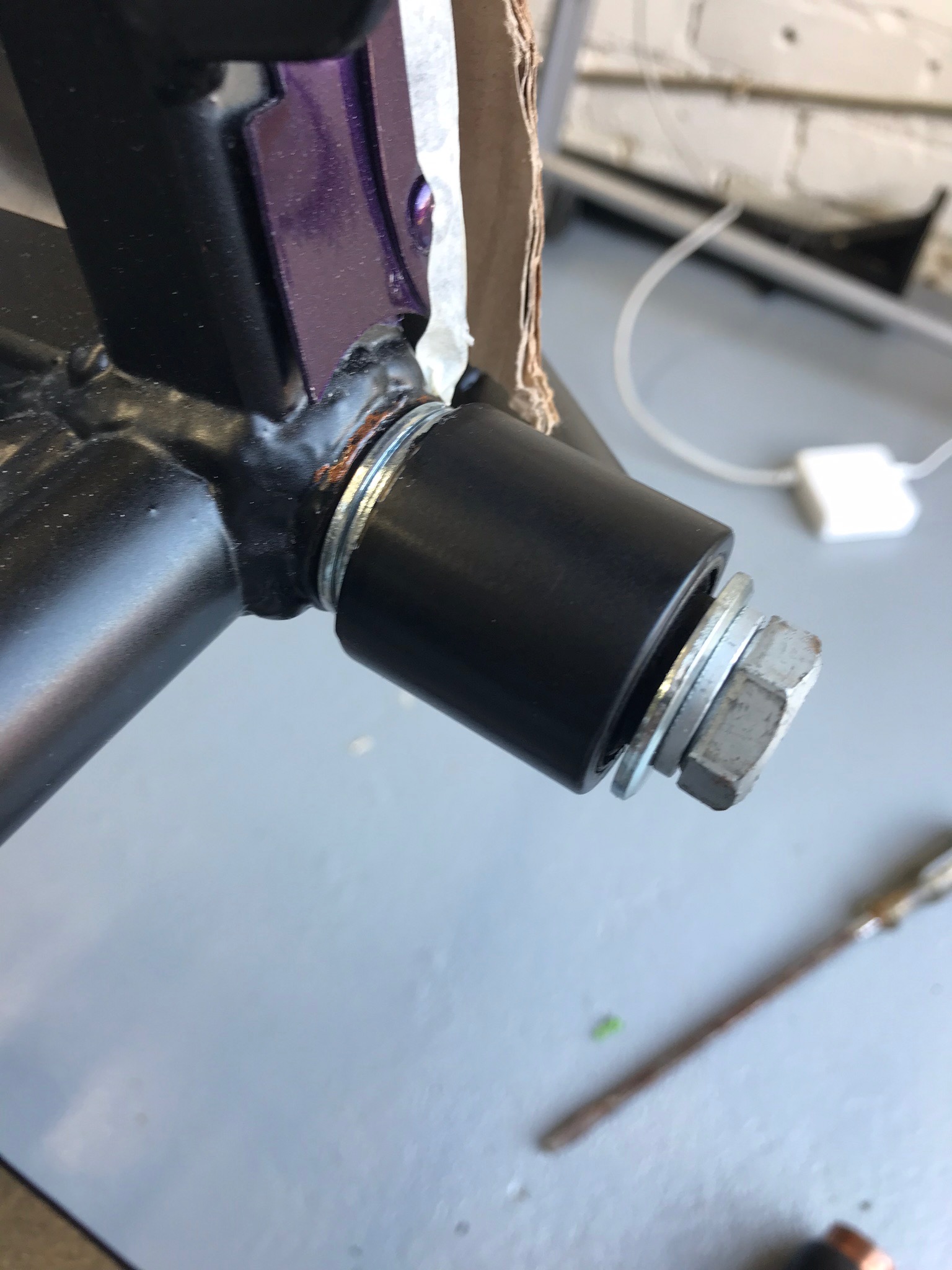 I found a M8 penny washer that was 1.5mm thick, 1mm thinner than the supplied washers. I thought I stood a chance of getting that in.