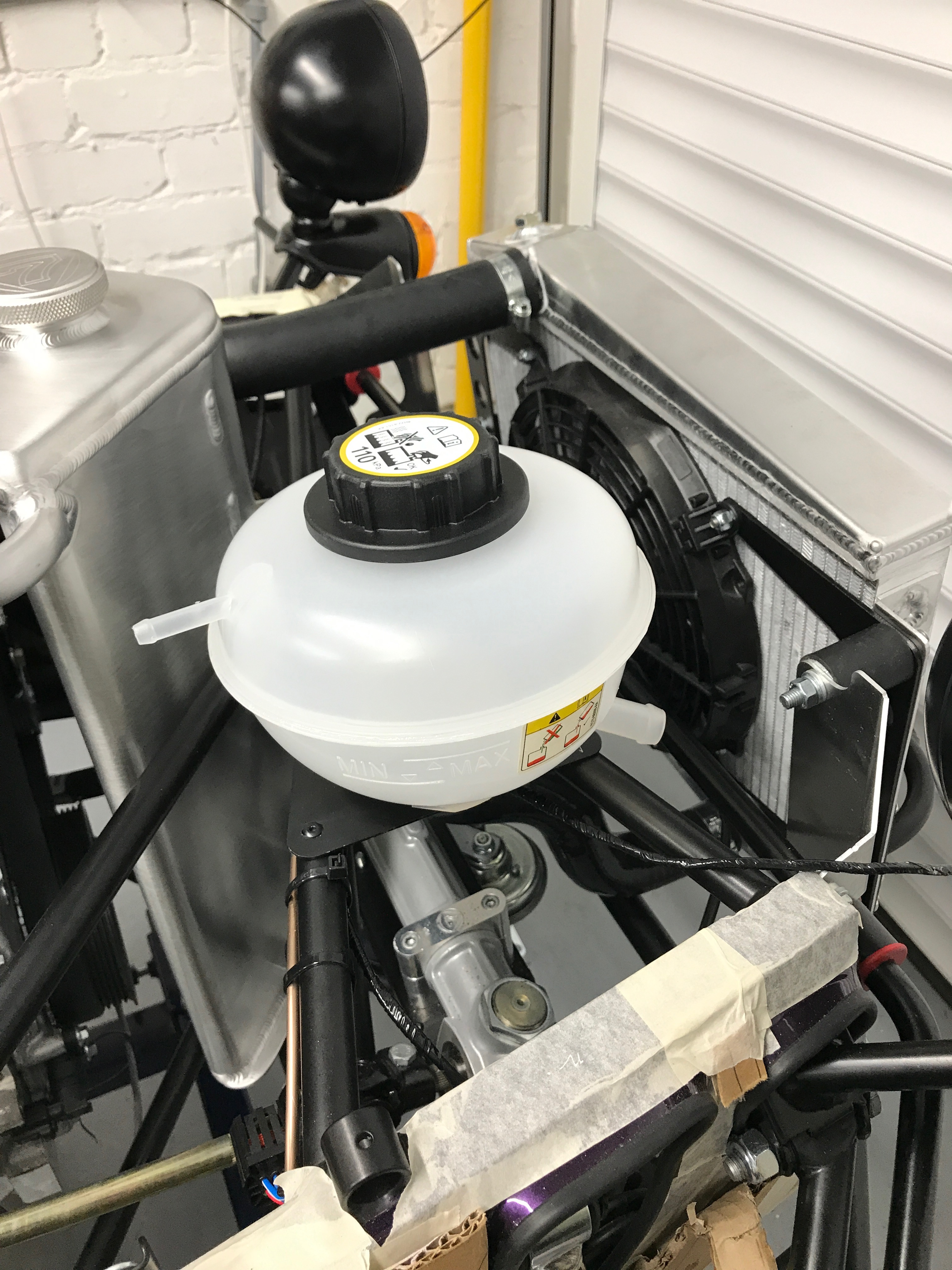 Now back from the US and the after effects of hurricane Irma… I have some more time to get on with the build. I’d left the project at the point where I really needed to get on with the engine bay plumbing and I’d laid all the hoses out in the engine bay prior to the trip. The 5/16th” water expansion bottle hose was missing from the kit but while I was in the US I’d emailed Derek and the hose had arrived while I was away… so first task was Water Expansion Bottle.
